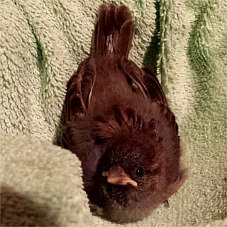 Die erste Hürde ist genommen: Unser kleiner Spatz hat die erste Nacht nach seinem Sturz überlebt!