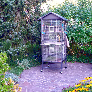 Heute Morgen konnte es Furchi kaum erwarten die Voliere verlassen zu dürfen. Nach dem Öffnen des Türchens besuchte Furchi noch kurz meinen Nacken und danach ging es sofort ab in Richtung seiner bereits in den benachbarten Sträuchern rufenden neuen Freunde. Ob er auch heute wieder zurückkommen wird?