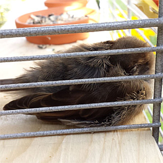 Furchi hat zum ersten Mal nachts "auswärts" in der Voliere geschlafen. Heute morgen war er ausgeruht und munter. Ganz anders als sein Pflegevater, der gegen drei Uhr in der Nacht in den Garten ging und kontrollierte ob alles in Ordnung ist beim süßen kleinen Piepmatz.