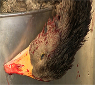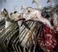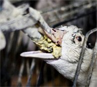 Beim Stopfen wird den Tieren mehrmals täglich ein Metallrohr in den Hals gerammt, durch das ihnen bis zu 2,5 kg gesalzener Maisbrei in den Magen gepumpt wird. Häufig kommt es dabei zu Verletzungen der Speiseröhre oder der Magen platzt, weil er die viel zu großen Futtermengen nicht aufnehmen kann. Die Leber der Gänse wächst krankhaft auf ein Gewicht von bis zu einem Kilogramm an. Viele Tiere überleben diese Tortur nicht und sterben qualvoll. Doch auch diejenigen, die das Ende der Mastzeit erreichen, sind so schwach und krank, dass sie kaum noch atmen oder sich bewegen können. Zum Teil sind die Tiere noch nicht einmal betäubt, wenn ihnen am Ende ihrer Leidenszeit die Kehle aufgeschnitten wird.