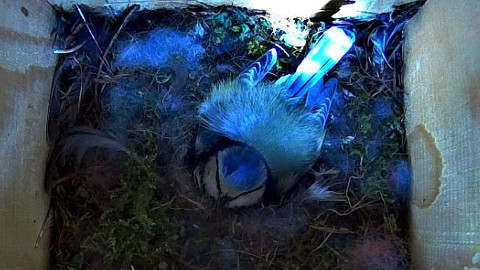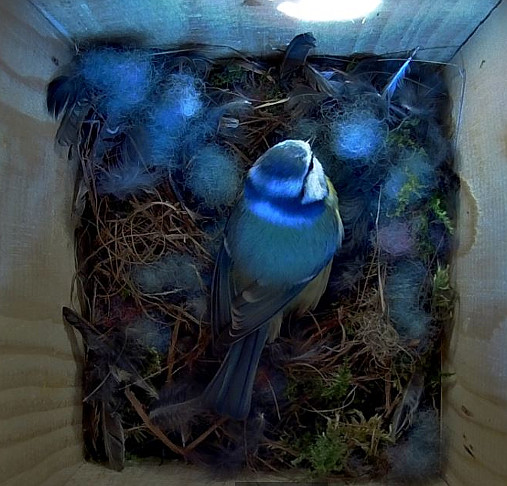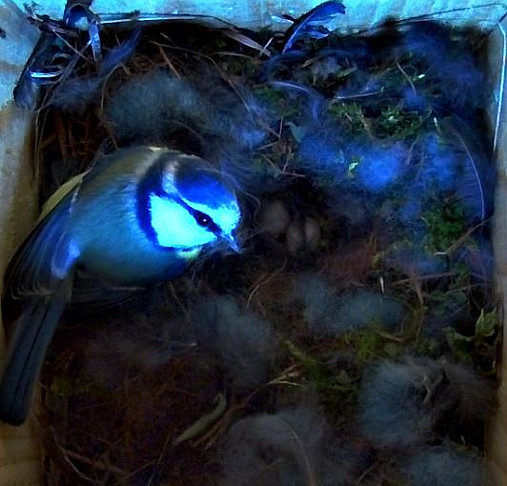 Wie bereits am 5. April befürchtet verliert Blaumeisenmama "Kleine Heldin" leider nach und nach die Bindung zu ihrem Gelege. Inzwischen kommt sie nur noch zum Schlafen in den Kasten. Die Brut ist nach dem tragischen Tod von Papa "Kleiner Held" leider gescheitert. 😢
