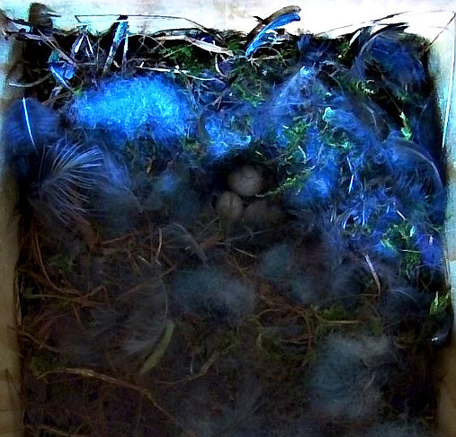 Noch immer geht es nicht wirklich voran mit dem Nestbau. Das ist aber bei der nasskalten und stürmischen Witterung auch nicht verwunderlich. Sobald sich das Wetter bessert werden die Blauen durchstarten. 😉