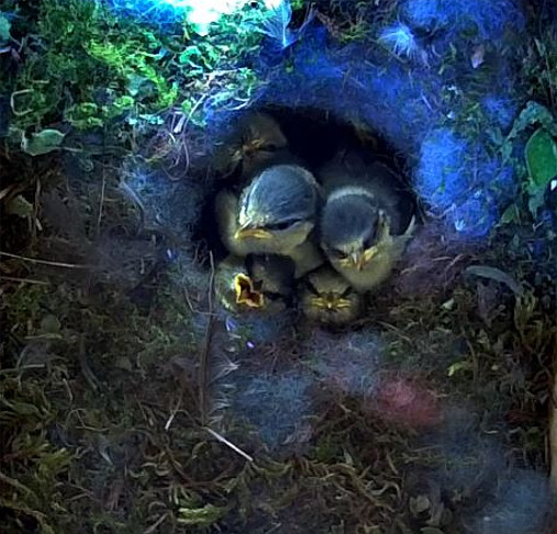 Unsere 5 Meisenkinder entwickeln sich prächtig. Ihre Augen haben sich geöffnet und sie beginnen sich bereits zu putzen. Zwei Drittel ihrer Nestlingszeit haben die Kleinen inzwischen schon hinter sich gebracht.