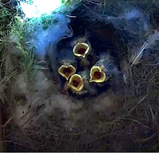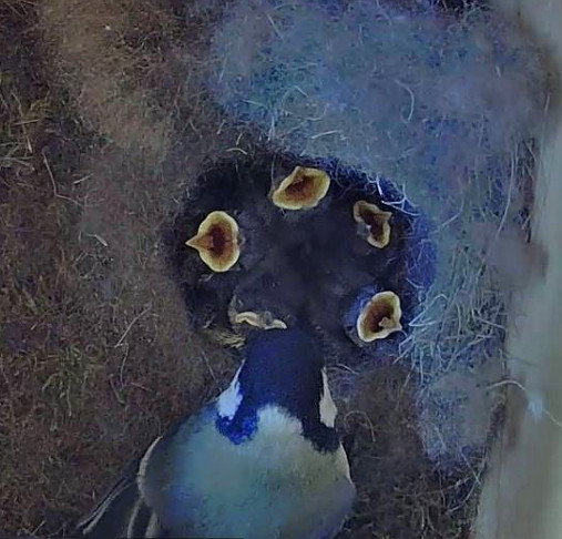 Etwas früher als erwartet sind am 26. April alle 5 Küken geschlüpft. Es geht ihnen gut! Inzwischen sind sie schon 5 Tage alt. Mama und Papa Kohli sind sehr fürsorgliche Vogeleltern. Fleißig schaffen sie reichlich Nahrung für die Kleinen herbei. Zwischendurch hudert Mama Kohli ihre Küken noch. So darf es gerne weitergehen! 🍀