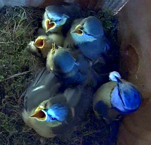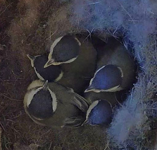Nur wenige Tage, nachdem im Nistkasten-2 unsere fünf jungen Kohlmeisen ausgeflogen sind, schlüpften im Nistkasten-1 sieben Blaumeisenküken. Inzwischen sind sie schon 4 Tage alt. Auch diese Brut verläuft zum Glück bisher ohne Probleme. Ich hoffe, das bleibt auch so! 😊🍀